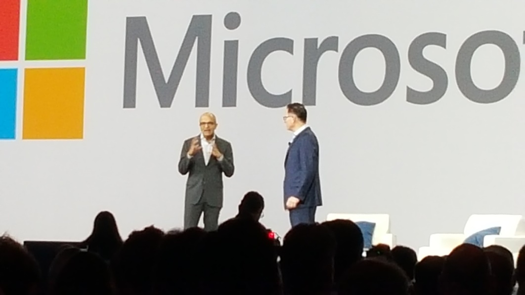 Posteriormente tivemos um bate papo entre Michael Dell e Satya Nadella, que afirmaram que não são concorrentes, mas sim trabalham juntos com o foco no cliente, destacaram que a adoção do Windows 10 tanto em ambiente doméstico quanto corporativo está superando as expectativas. Satya disse que os planos da Microsoft incluem 1 bilhão de dispositivos executando Windows 10. Ele destacou que o Surface Book não é um concorrente aos fabricantes como a Dell, mas sim uma forma de definir uma tendência. Michael e Satya anunciaram também a oferta de nuvem privada Microsoft disponibilizada através da Dell (uma solução empacotada, instalada e suportada pela Dell que inclui servidores PowerEdge, rodando Windows Server com Hyper-V, System Center, Azure Pack com sistemas de disco PowerVault).