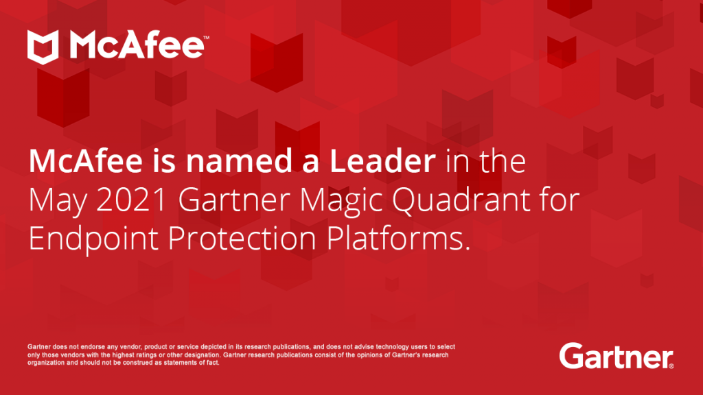 McAfee é indicada como líder no Quadrante Mágico da Gartner de 2021 para plataformas de proteção de endpoint (EPP)